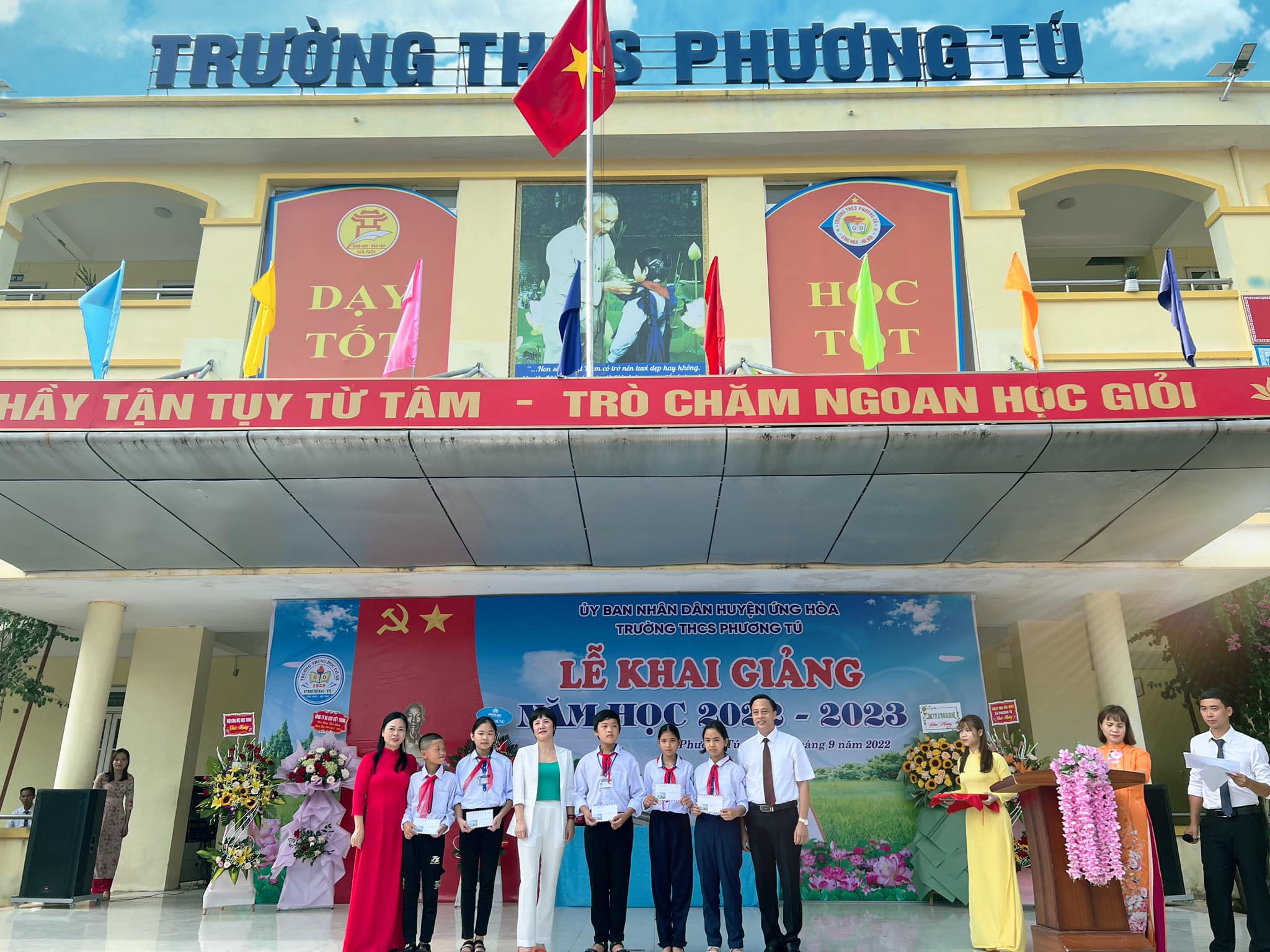 Lễ Khai giảng năm học 2022-2023 của Trường THCS Phương Tú đã thành công tốt đẹp. Tập thể HĐSP nhà trường xin trân trọng đón nhận và cảm ơn các đồng chí lãnh đạo Đảng ủy, HĐND, UBND, các ban ngành đoàn thể xã Phương Tú; lãnh đạo Chi bộ, chính quyền 6 thôn trong xã; Ban đại diện CMHS nhà trường; các doanh nghiệp, công ty; đã đến dự Lễ khai giảng, tặng hoa và quà chúc mừng nhà trường. Đặc biệt, xin trân trọng cảm ơn tấm lòng nhân ái của chị Đặng Thị Nhung, chị Nguyễn Thị Luyện cựu học sinh của trường đã dành tặng cho các em học sinh nghèo và học sinh có hoàn cảnh đặc biệt khó khăn nhân dịp đầu năm học mới.